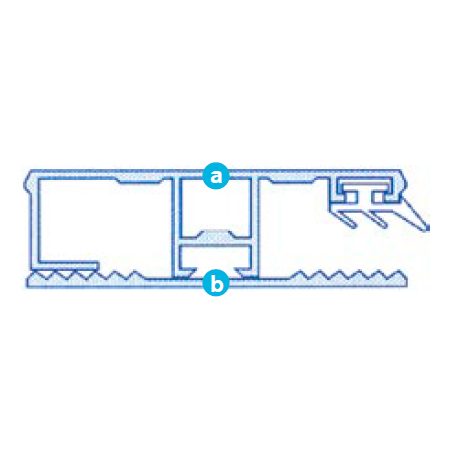 Die Unterseite ist TPV-Flachprofilband mit selbstklebender Unterseite. Diese kann an der darunter liegenden Konstruktion befestigt werden. Außerdem ist 1 Seite des Profils geschlossen, da hier kein Platz für eine Stegplatte sein muss. So ist es sauber verarbeitet und es gelangen weder Wasser noch Schmutz in das Profil.